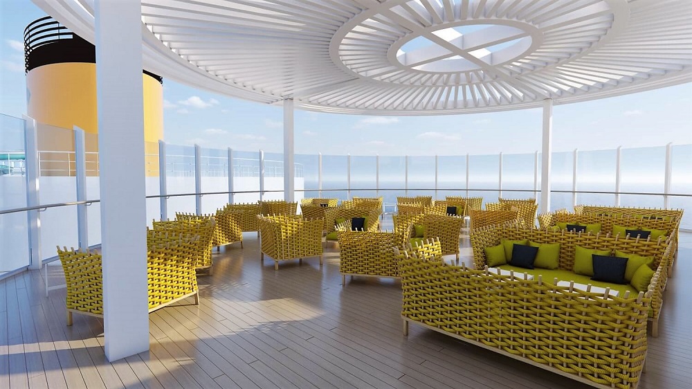 Veľká opaľovacia terasa Piazza del Campo na zadnej časti, s veľkolepým schodiskom cez tri paluby, otvára veľkú terasu pod potvoreným nebom. Na námestí Piazza dei Miracoli, v prednej časti lode, je miestom pre nákupy, gastronómiu a zábavu.