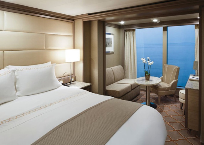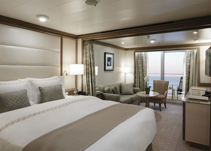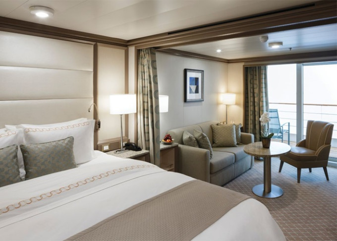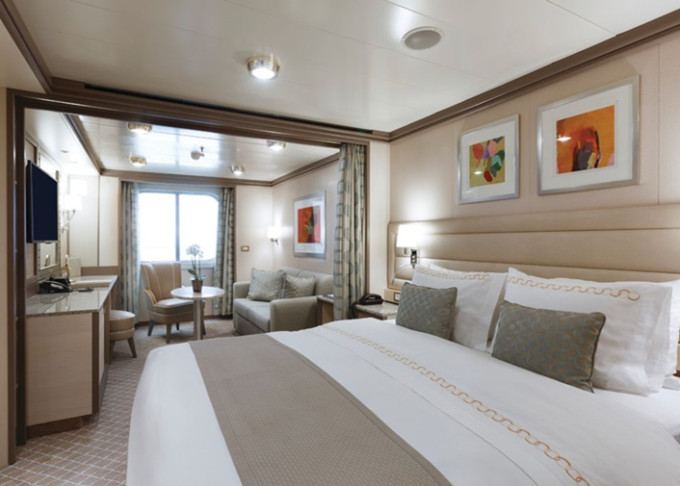 | R1 - Royal Suite 1 92 m² (vrátane balkóna 12 m²), Spálňa s obývacou a jedálenskou časťou. 7. paluba vpredu. Max 3 osoby. | 74 700 € 24 900 € za osobu | ||