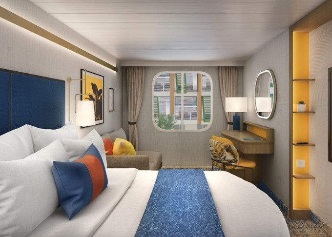 T5 - Vnútorná kajuta s oknom / Surfside Family 17 m². Neotvárateľné okno s výhľadom na štvrť Surfside. 8. paluba vpredu. Max 3-4 osoby. 4 005 € 1 335 € za osobu