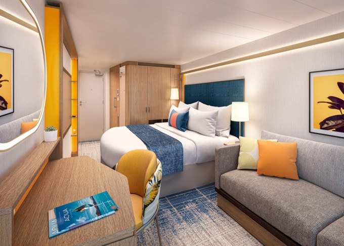 | I3 - Kajuta Infinite Ocean View 23 m² (vrátane 4,5 m² verandy Infinite s výhľadom na more). 9,10,11. paluba. Max 4 osoby. | 5 996 € 1 499 € za osobu | ||